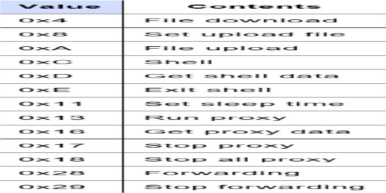 Once DslogdRAT establishes communication with the C2 server, it uses a simple XOR encoding and decoding process to exchange data. During the initial communication, the malware sends basic information about the infected host. It then waits for further commands from the server, which can include file uploads and downloads, execution of shell commands, and setting up proxy functionality. The encoding mechanism helps the malware obfuscate its communications, making it harder to detect while maintaining its ability to carry out malicious activities on the compromised system. The following are the commands supported by DslogdRAT: