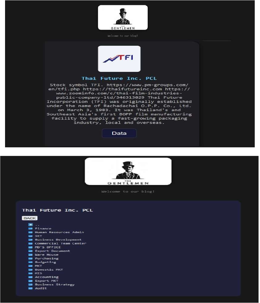 Recently, the Gentlemen Ransomware was observed attacking and publishing the data of Thai Future Incorporation Public Company Limited (https[:]//thaifutureinc[.]com/) on its dark web website. Thai Future Incorporation Public Company Limited, formerly known as Thai Film Industries Public Company Limited, is a Thailand-based company engaged in the manufacturing and distribution of packaging films. Their product range includes biaxially oriented polypropylene (BOPP) films, cast polypropylene (CPP) films, and metallized films.