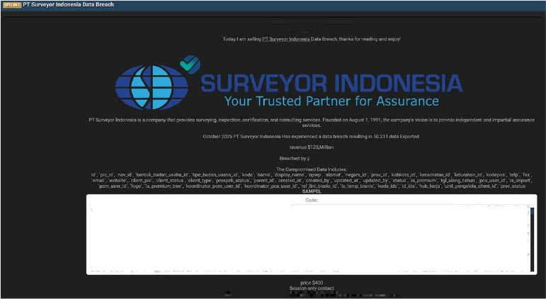 PT Surveyor Indonesia Data Advertised on a Leak Site