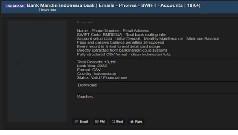 Summary: The CYFIRMA research team has identified claims from a threat actor operating under the name “BreachLaboratory,” who alleges responsibility for compromising Bank Mandiri.