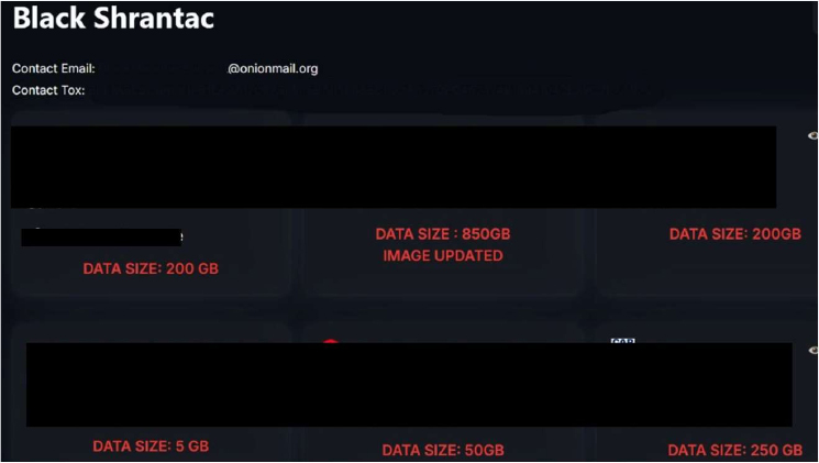 The appearance of Black Shrantac’s data leak site (Source: Surface Web)