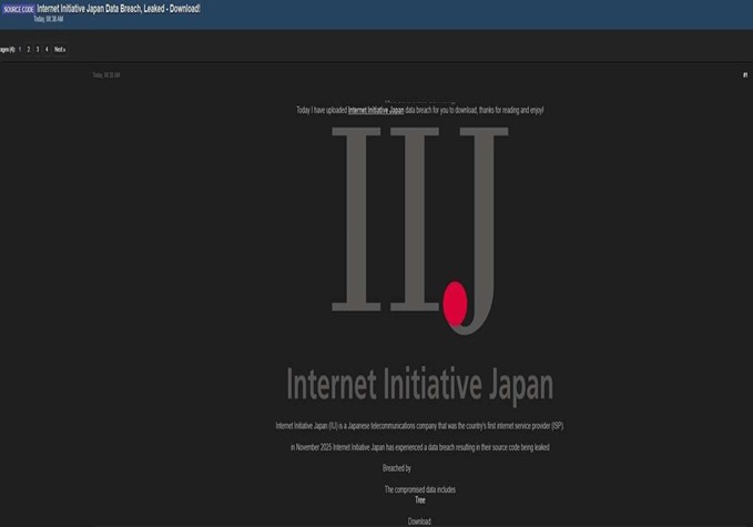 The dark web post offers downloads of stolen IIJ source code, allegedly obtained through unauthorized access to internal development environments or source code repositories. Source code represents the core intellectual property for IIJ’s network services and cloud infrastructure. The breach indicates a severe compromise either from phishing, vulnerability exploitation, insider threats, or an advanced persistent threat (APT) actor leveraging stealthy tactics.