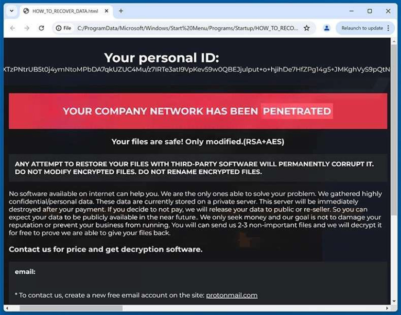 Screenshot: The appearance of Karma (MedusaLocker) ransomware‘s ransom note “HOW_TO_RECOVER_DATA.html “) (Source: Surface Web)