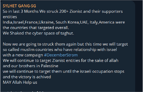 Sylhet Gang-SG Spokesperson: “the Indians are showing aggression along the Bangladeshi border, so our other admin moderators held a meeting, and we are waging a war against India now.”