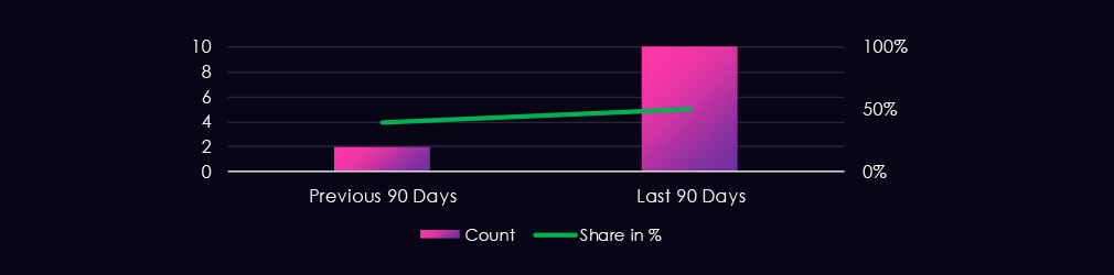 That is an increase from the previous 90-day period, during which 2 out of 5 campaigns targeted this industry, and in the overall share from the previous 40%.