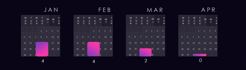 The monthly trendline shows us a dip in September, followed by 180-days high in October, and since then, numbers have oscillated around a mildly downward trendline. Just the first few days of April have recorded 5 victims.