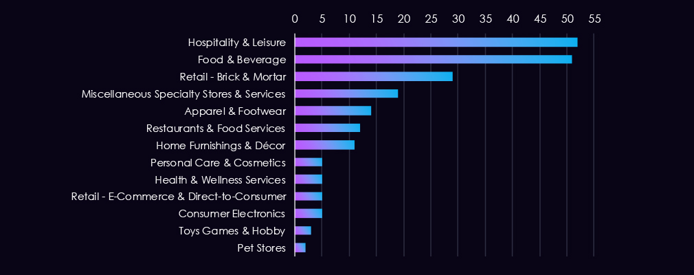 Hospitality & Leisure and Food & Beverage led the sector with near-identical victim counts, pointing to sustained threat actor interest in consumer-facing businesses that handle high volumes of payment and personal data. Retail – Brick & Mortar also recorded notable activity, rounding out a clear top tier.