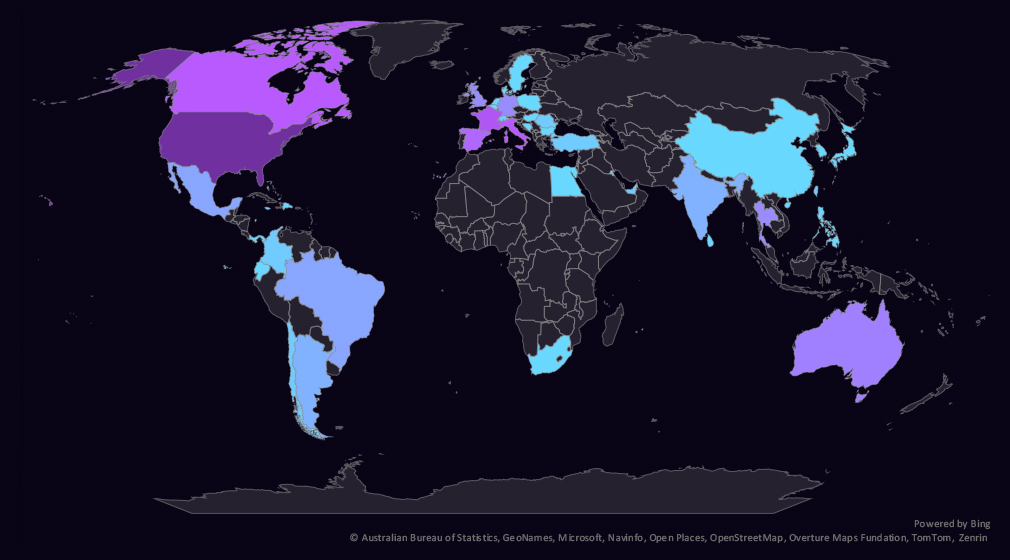 The geographic distribution heatmap underscores the widespread impact of ransomware, highlighting the countries where victims in this industry have been recorded.