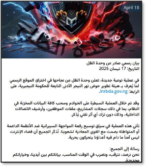 The group framed the intrusion as part of a broader campaign against regimes they allege support hostile forces, warning that online systems are not secure while such actors operate. The statement concludes with a direct message: “We monitor, we watch, and we strike when the time comes. Your data is in our hands, and your options are limited.” However, the authenticity of the claim and the extent of the breach remain unverified.