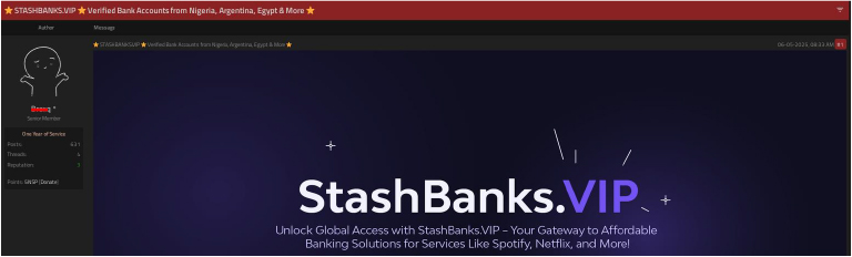 On June 5, a dark web forum user identified as “Broxq” advertised a service called STASHBANKS.VIP, claiming to offer verified premium bank accounts from multiple countries, including Nigeria. The post alleged that buyers would have easy access to these accounts.
