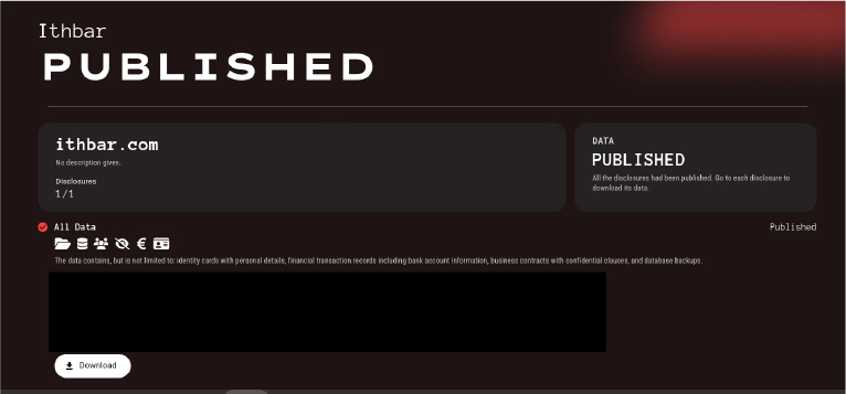 Ithbar, an investment and financing platform based in Oman and licensed by Oman’s Financial Services Authority, reportedly had its data published by the KillSec ransomware group in November 2024. The leak is said to include copies of national ID cards, personal details of clients and employees, confidential company files, contracts, and database backups. Such an exposure poses significant risks of identity theft, financial fraud, and misuse of sensitive corporate information, while also underscoring the growing threat to Oman’s financial services sector.