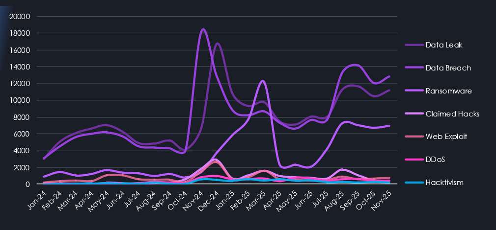 A focused view of 2025 confirms that data leaks, data breaches, and ransomware chatter are trending upward into early 2026.