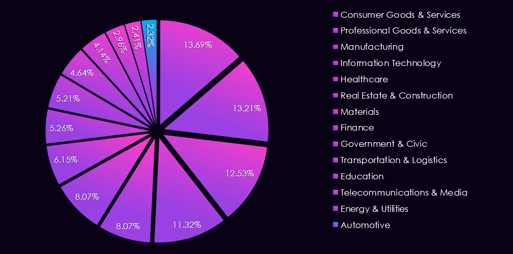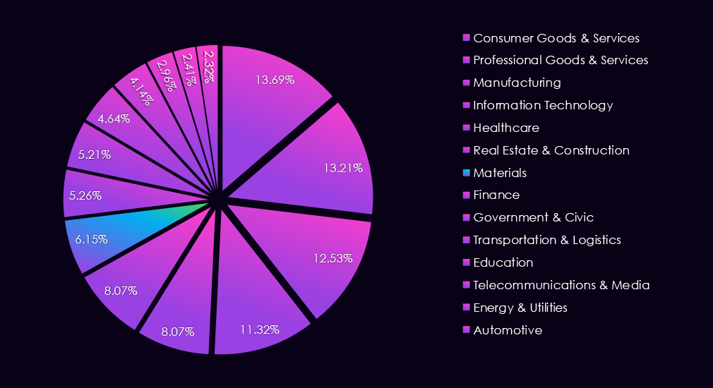 These victims were observed across multiple segments within the industry, as shown below: