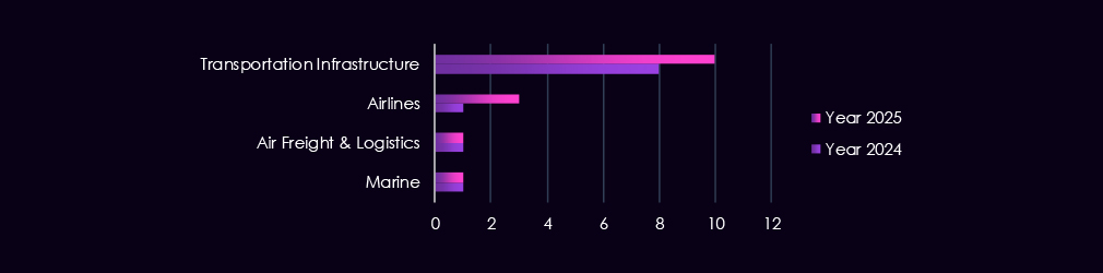 The materials industry recorded increased diversity and activity in 2025. In the 2024 data set, only two campaigns were identified. One campaign displayed overlapping TTPs associated with TA505 and Fancy Bear. The second campaign was attributed to Cozy Bear, consistent with focused espionage activity.