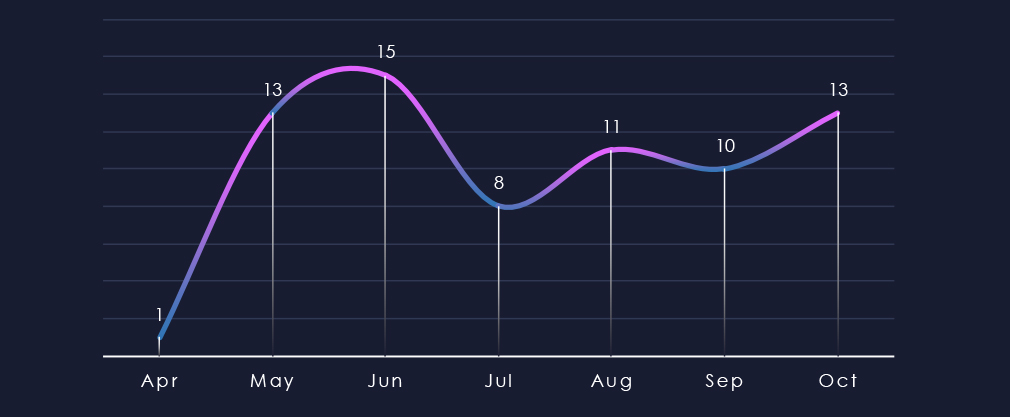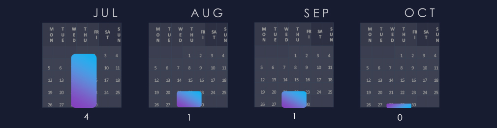 After spike of activity in May and Jun there was a dip in activity in July. Since then, activity grew mildly.