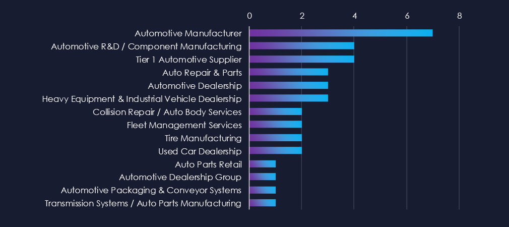 Manufacturers are leading the charts this time around. In previous reports dealerships were usually the top sectors.