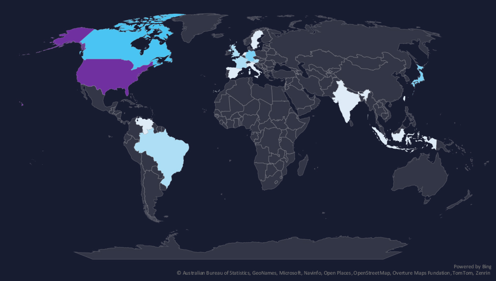 Countries with recorded victims align strongly with known automotive powerhouses. Japan, South Korea and United States are top 3.