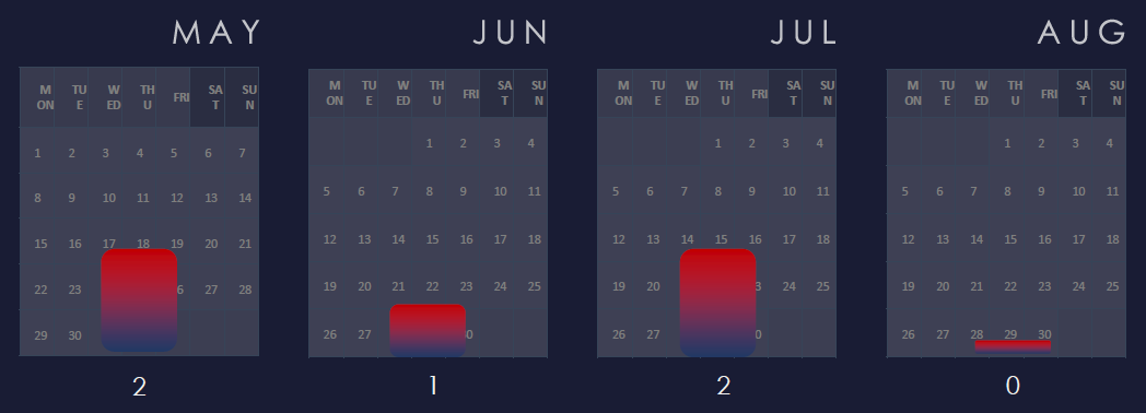 Considering May and August are equally split in half at the time of collection, we can see sustained and consistent numbers across the months.