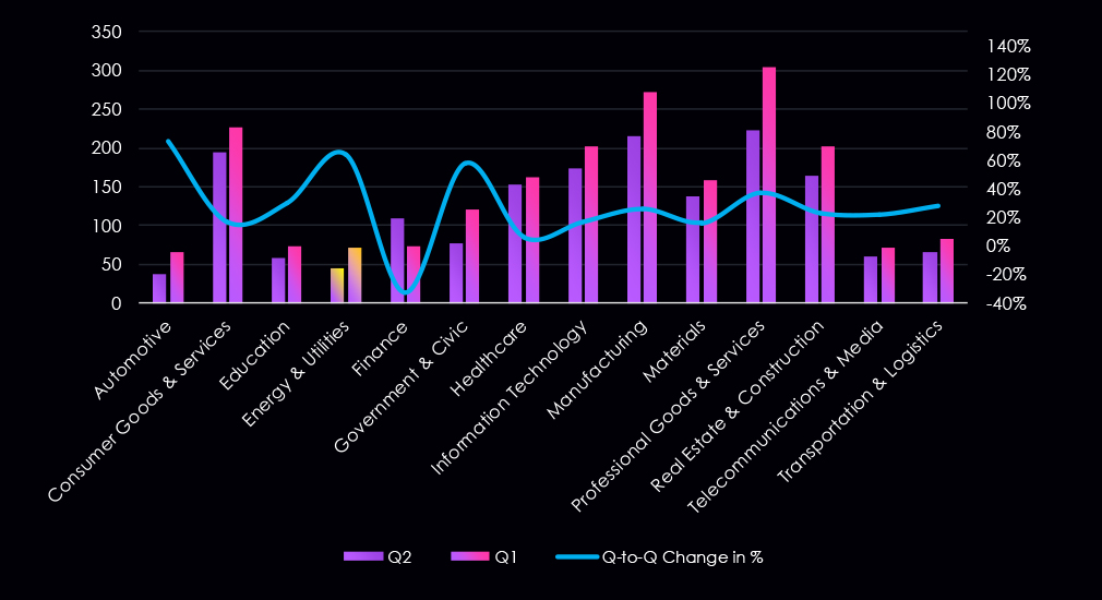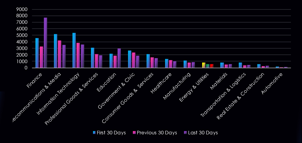 That is an increase from the previous 90-day period, during which 2 out of 15 campaigns targeted this industry, also increasing the overall share from the previous 13%.