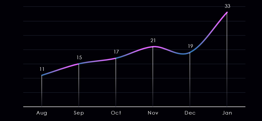 The monthly trends show a major uptick of detections during January, with December recording 1 campaign and a few days of February already showing another detection.