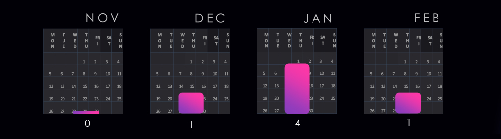 Over the last 180 days, activity grew slowly but steadily each month, until January, when it suddenly spiked.