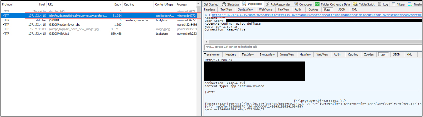It further downloads an RTF file with the name “mydearcutieireallyloveryoualwaysforgreatthingshappenedinsideofusforloverstogetreadyforthepointounderstandtheupdationforproccess.doc” by connecting to URL “http[:]//107[.]173[.]4[.]15/gbn/mydearcutieireallyloveryoualwaysforgreatthingshappenedinsideofusforloverstogetreadyforthepointounderstandtheupdationforproccess.doc”. The order of redirection is as follows: