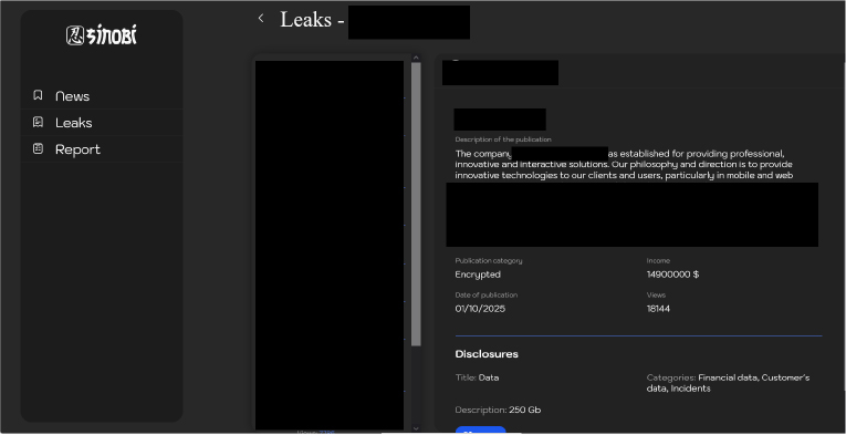 On October 1, 2025, the ransomware group Sinobi exposed 250GB of financial and customer data associated with professional service providers based in Hong Kong.