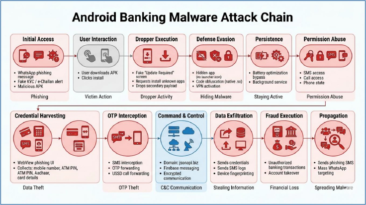 Furthermore, the large-scale targeting of Indian banking users, combined with social engineering delivery via messaging platforms and real-time financial fraud enablement, aligns with known organized cyber fraud ecosystems operating within India, particularly those specializing in mobile-led financial scams.