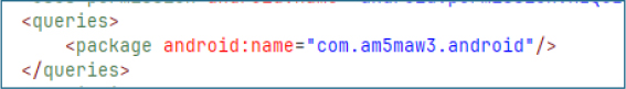 Within its manifest, the application explicitly queries for the package com.am5maw3.android. This enables it to check whether a specific secondary application is present on the device, indicating coordinated behavior. The referenced package is intended to be installed as the primary payload, which the app is designed to deploy.