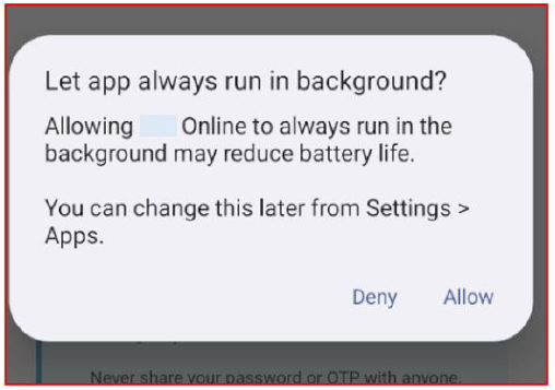 Along with SMS and call-related permissions, the application requests battery optimization exemption. This allows the app to bypass system power-saving restrictions and continue running in the background without interruption.