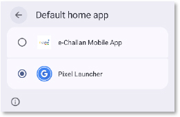 When the app is launched, it immediately redirects the user to the default home app settings page. This permission is normally used for managing the device’s home screen, but here it is abused to trap the victim. Once granted, pressing the Home button repeatedly sends the user back to the same settings page, preventing them from exiting the screen. This loop continues until the hidden payload is installed, leaving the victim with no easy way to return to normal navigation.