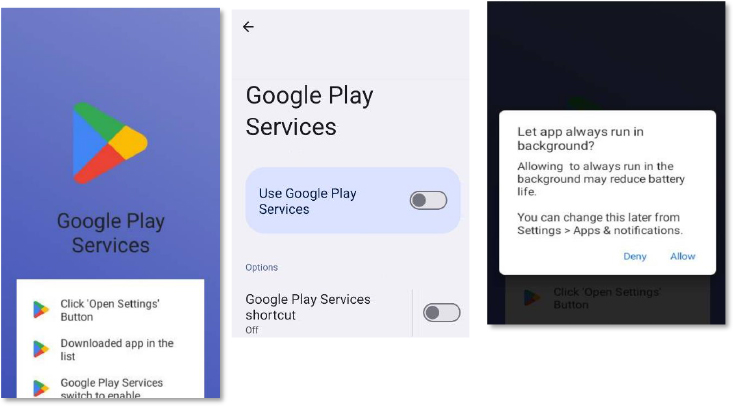 After the APK is installed, the malware automatically launches and displays a fake Google Play-style screen using the Play Store logo, along with instructions guiding the user through the next steps. The real goal behind this interface is to obtain Accessibility Service privileges. Once granted, the malware can automate UI actions, auto-approve permissions, control the screen, and even perform actions such as unauthorized transactions.