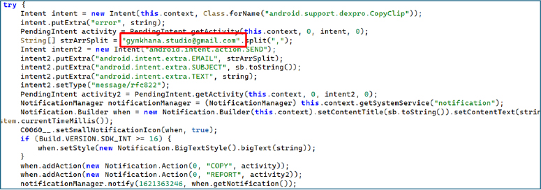 The hardcoded email address [email protected], extracted directly from the malware’s crash-reporting and notification exfiltration routine, serves as a significant operational artifact linking the malware to a broader underground development ecosystem. Open-source intelligence reveals that this email address is publicly associated with content promoting Android application protection, obfuscation, and modification tools, including paid developer utilities used to hinder reverse engineering. The same branding (“Gymkhana Studio”) appears across multiple platforms, including a public technical blog focused on Android reversing, Smali-to-Java conversion, and APK modification workflows. Additionally, developer identities using the “Gymkhana” naming convention are observed contributing to Android-related repositories and developer discussions centered around app protection, obfuscation, and modification.