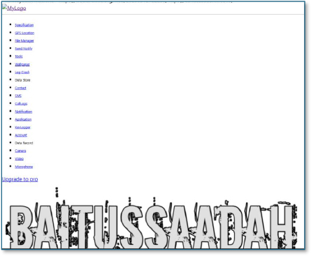 An archived web interface associated with the “baitussaadah” domain is linked through the same Gymkhana ecosystem previously identified in developer profiles and email infrastructure. The interface exposes a structured control-panel style feature set including GPS Location, File Manager, Send Notify, Log Crash, Data Store, Contacts, SMS, Call Logs, Notifications, Applications, Keylogger, Camera, Video, and Microphone. The presence of these modules indicates a fully featured Android surveillance and remote access framework, consistent with Remote Access Trojan (RAT) or spyware control panels. The availability of an “Upgrade to Pro” option further signals a commercialized malicious tooling platform, rather than a one-off research project. This OSINT artifact strongly reinforces that the malware ecosystem tied to the “Gymkhana” branding operates within a semi-commercial Android spyware and surveillance tooling marketplace, directly supporting large-scale malware campaigns such as the one observed in this investigation.