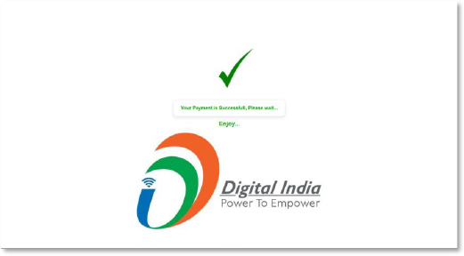 Finally, a fabricated success page with a green confirmation tick and “Digital India” branding gives the illusion of a legitimate and completed transaction. This is used to suppress suspicion and delay reporting while attackers immediately process the stolen financial data.