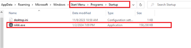 Nikki Stealer drops PE (Portable Executable) files into the startup folder, ensuring it runs automatically every time the system starts up.