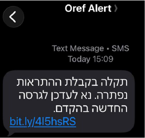 | T1660 | Phishing | SMS phishing via "Oref Alert" with bit.ly/4I5hsRS |