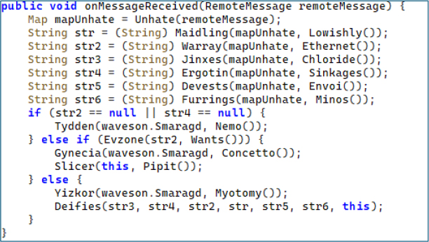 Figure 12 – Firebase Cloud Messaging C2 Command Processing – Six-Field Extraction and Dispatch to Central Router.