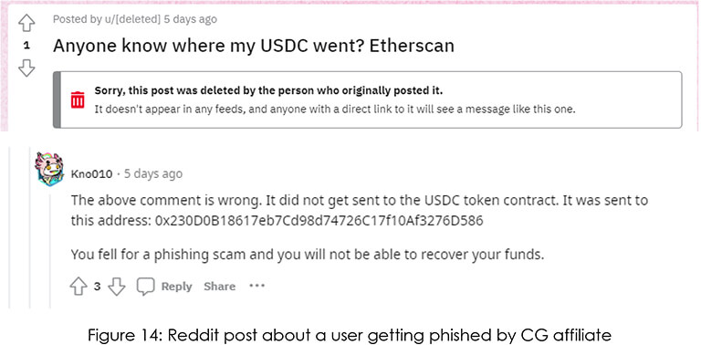 Cryptocurrency Drainers, also known as Crypto Stealers, are designed to steal the funds from a victim’s wallet. The drainers are primarily spread using a combination of social engineering and phishing, luring victims to enter their wallet details on deceptive websites. One of the notable drainers in 2023 was Inferno Drainer – whose developers announced that they were shutting down (public) operations in November 2023, leaving a void in the crypto drainer community. We have observed multiple drainers that are trying to fill that gap with aggressive marketing, but the CG project bags the winner’s title, with close to 50k subscribers on their telegram channel and 10k affiliates working with them. The affiliates have been observed to be Russian, English and Chinese speakers.