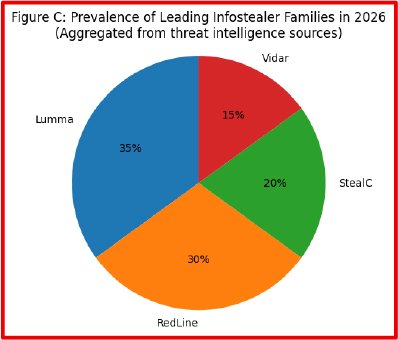 Popular infostealer families observed in recent threat intelligence reporting include RedLine, Raccoon, Vidar, Lumma, and MetaStealer. These tools are commonly distributed through malware-as-a-service (MaaS) models, enabling low-skill actors to conduct large-scale credential harvesting campaigns.
