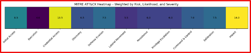 The resulting heatmap highlights tactical risk concentration, not merely technique volume.