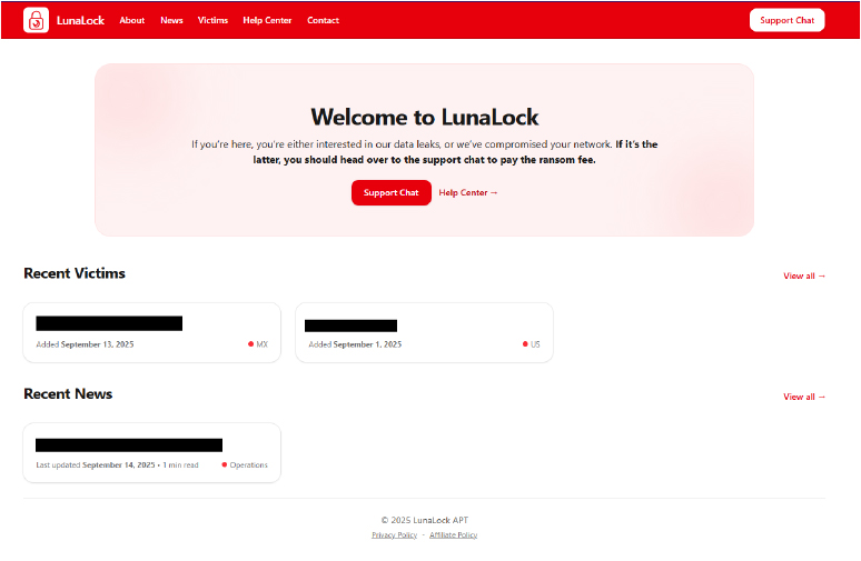 Lunalock is a newly observed ransomware group that emerged in 2025, primarily focusing on targeted data theft and extortion. As of September 2025, the group has claimed a total of 2 victims. Lunalock appears to operate with a highly selective targeting approach, emphasizing reputational and financial leverage over widespread encryption campaigns. Its limited but confirmed activity in September suggests an early-stage group that could expand its operations if successful in its initial campaigns.
